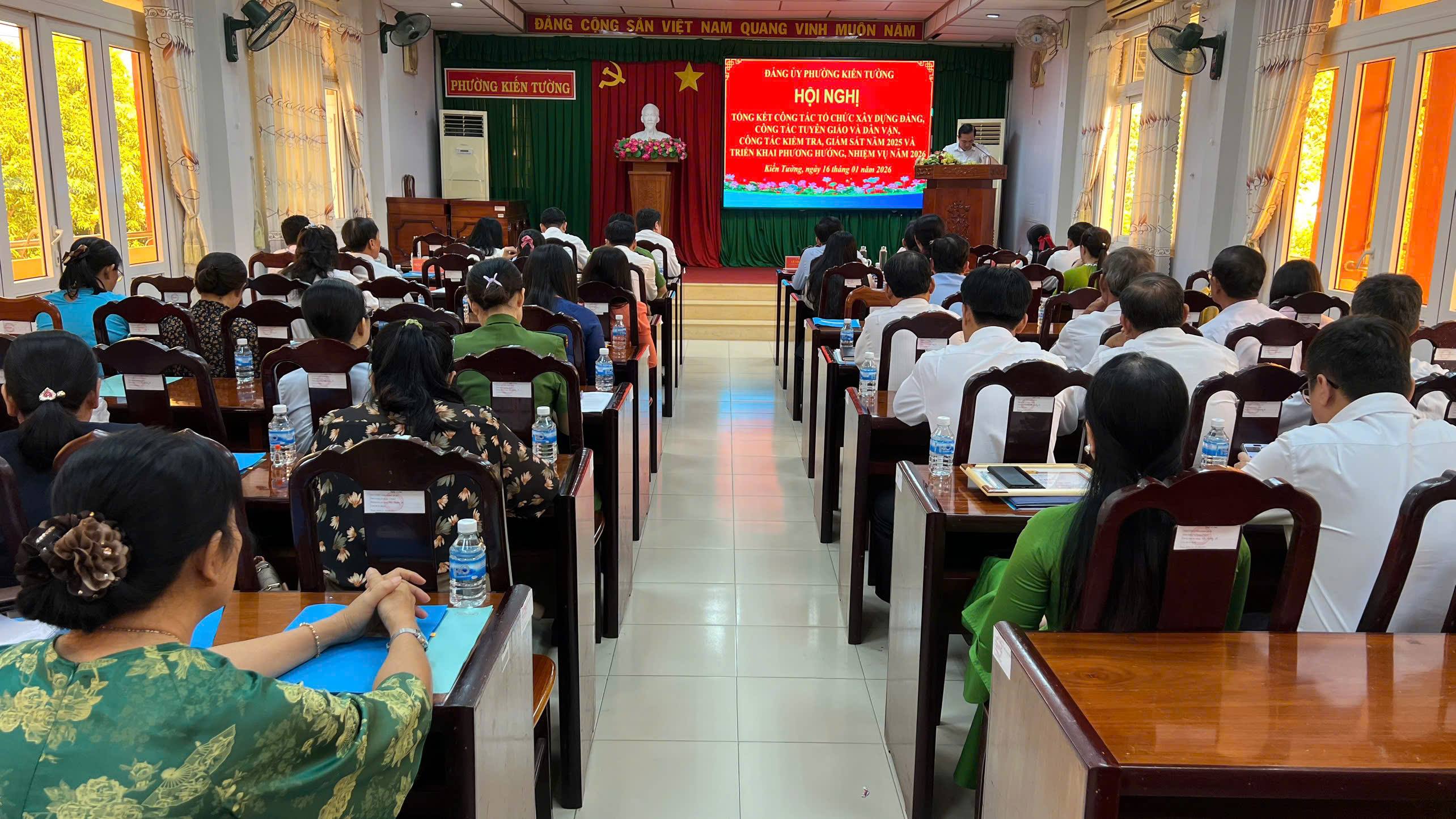 Sáng ngày 29/01/2026, Đảng ủy Phường Kiến Tường tổ chức Hội nghị tổng kết công tác bồi dưỡng lý luận chính trị và chuyên môn, nghiệp vụ năm 2025; triển khai phương hướng, nhiệm vụ năm 2026. Phó...
